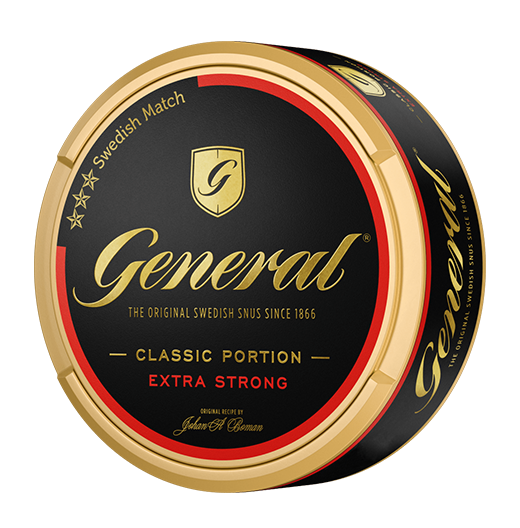 General Extra Stark Portion har med sin General-familj kommit att bli en riktig klassiker i snusvärlden. Det här är den extra starka versionen, 14mg/portion. Med sin fylliga och kryddiga tobakssmak, där du även hittar inslag av citrusaktiga kryddan bergamott och te, torkat gräs och läder. Kombinationen av kryddighet och syrlighet gör snuset välbalanserat.
