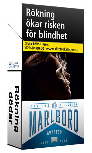 Marlboro Crafted Blue 100s är långa cigaretter och något svagare än dem röda.