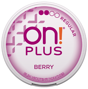 On! Plus Berry Slim Regular är ett vitt snus tillverkat av Helix Sweden. Denna produkt, som tillhör Slim-formatet, innehåller inte tobak men innehåller nikotin. Produkten anses ha en normal styrka.