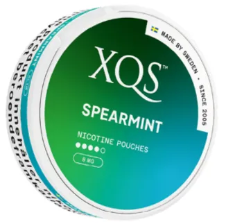 XQS Spearmint Slim Strong är en helt tobaksfri nikotinpåse. Istället för tobak innehåller den växtfiber med tillsatt nikotin och aromer i en perforerad påse med torr yta. Portionerna är i slimmat format med fuktigt innehåll och en torr utsida. De har en smak av mint och i varje dosa hittar du 20 stycken nikotinpåsar.